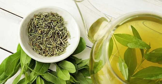 1. Rendam daun teh hijau dalam air panas selama 15 menit