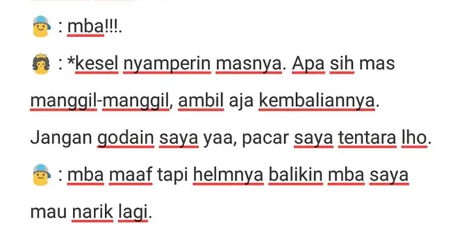Maafin penumpangnya ya pak, lupa kali mbaknya buat ngembaliin helmnya sampai diteriakin nggak noleh-noleh.