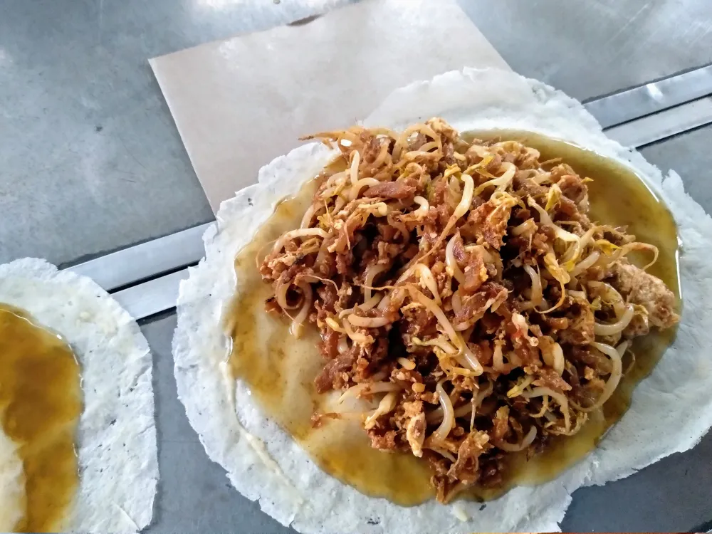 Jajanan ini juga kerap disebut sebagai Lumpia Basah khas Gang Arut. Selain itu isinya juga amat sederhana, yaitu hanya irisan bengkoang, tahu goreng, taoge, dan telur. Namun, saat kamu mencobanya, dijamin anti bosan, malah bikin nagih dan mau tambah lagi.