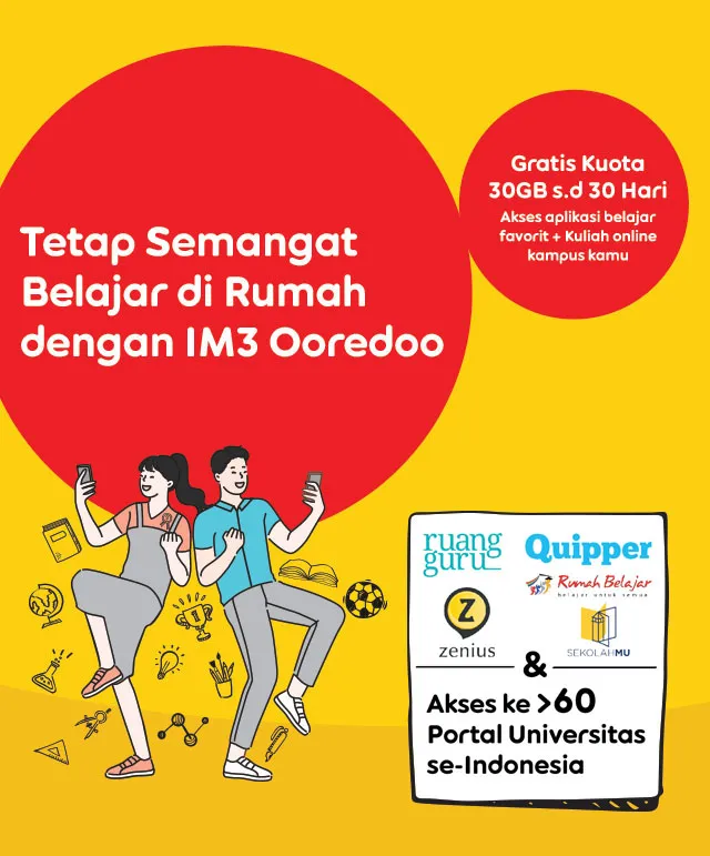 Menariknya, demi mendukung kegiatan belajar online tersebut di rumah, Indosat Ooredoo melalui brand IM3 Ooredoo menghadirkan kuota gratis 30GB untuk mengakses beragam aplikasi belajar online terkemuka di Asia Tenggara, seperti Ruangguru, Quipper, Sekolahmu.com, dan Rumah Belajar.