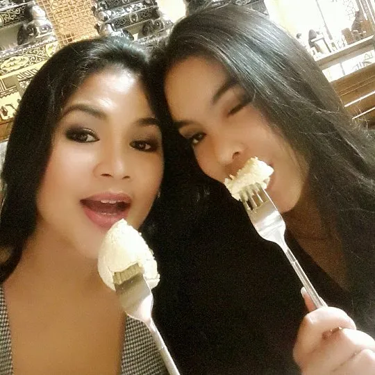 Kali ini Puti dan Syandria memamerkan pose yang anti mainstream. Sambil memegang garpu ketika makan siang, keduanya pamer selfie yang hasilnya nggak kalah stunning. Kompaknya Puti dan sang putri bikin iri ya, KLovers?