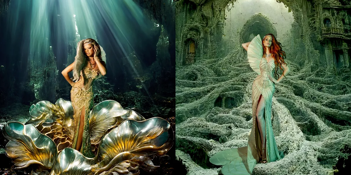 Konsep The Siren s Song S/S 23 juga tidak berhenti di situ saja, Biasanya, stereotipe tentang putri duyung atau sirens adalah warna pastel warna atau cerah.