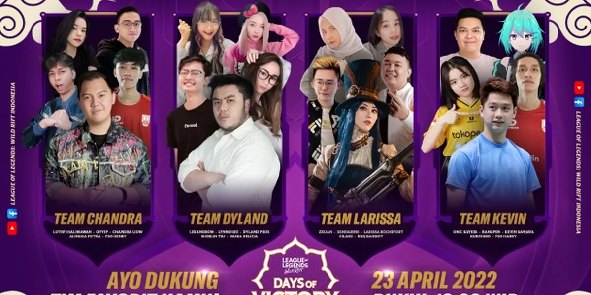 Jadi pastikan kamu ga ketinggalan untuk nonton Wild Rift Days of Victory Charity Fun Match di YouTube dan Facebook League of Legends: Wild Rift Indonesia, 23 April 2022, pukul 13.00 WIB.