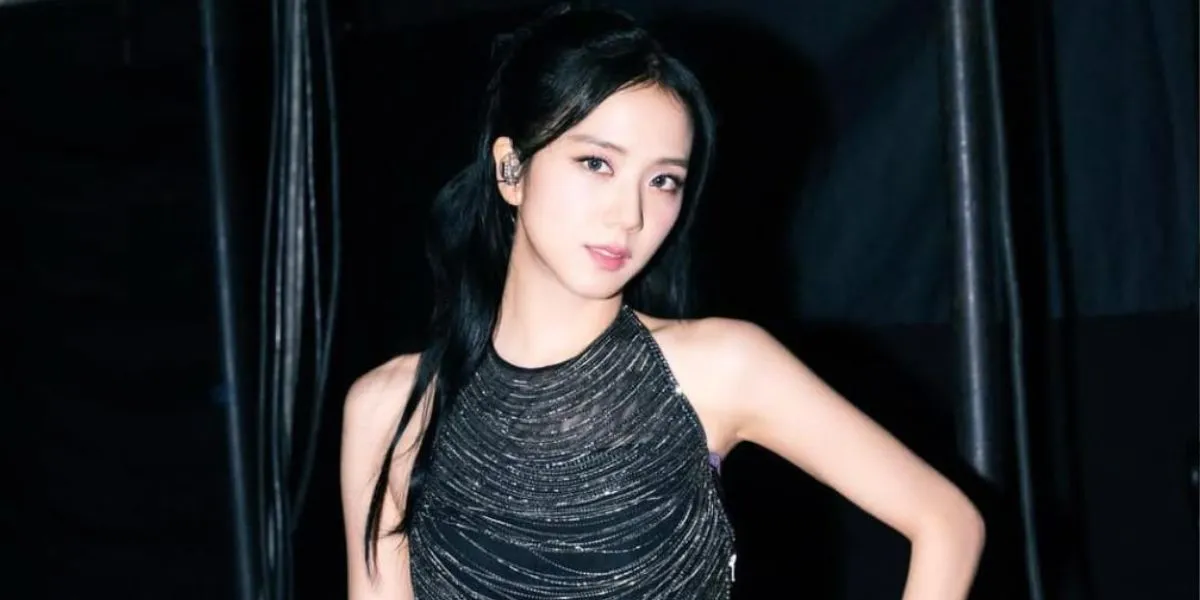 Tangan Jisoo menjulur ke depan sambil mengarahkan kamera, memperlihatkan detail makeup dan outfit yang serasi dengan nuansa pameran. Visual Jisoo yang classy langsung mencuri perhatian netizen.