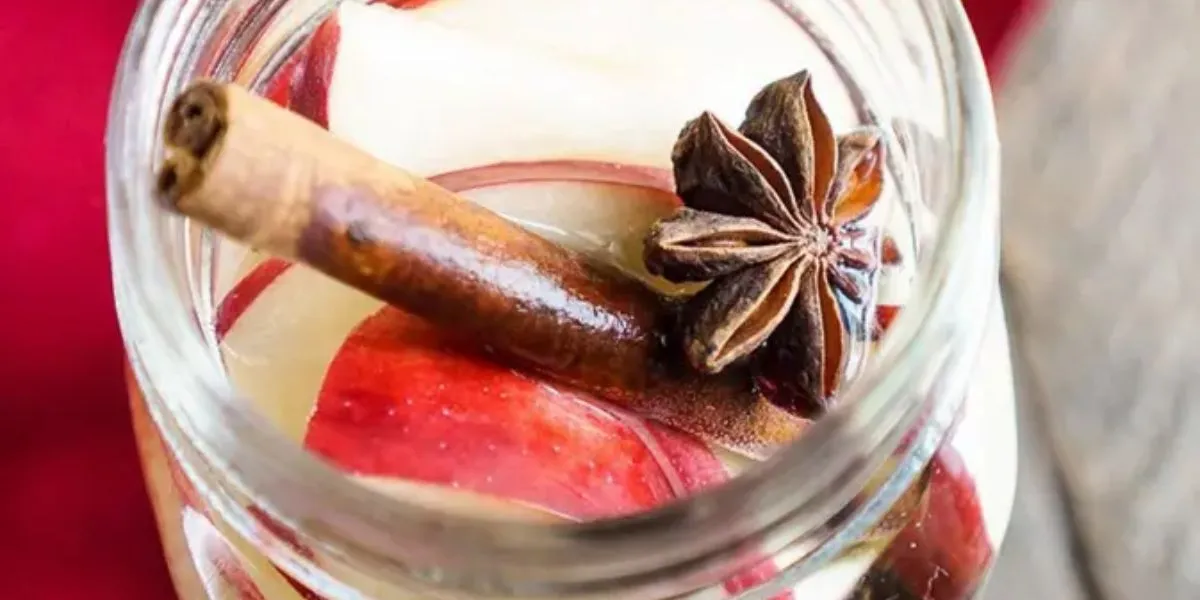 Masukkan apel ke dalam air mendidih yang beruap, lalu tambahkan tiga ruas jari kayu manis yang wangi. Keharuman kayu manis akan menyatu dengan manisnya apel, menciptakan teh yang menggugah selera.