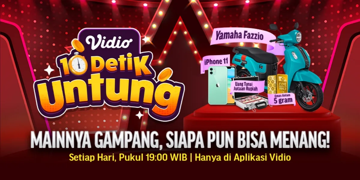 Sebagai puncak-nya, pada hari ini (12/09), Vidio akan mengumumkan tiga orang pemenang dari program quiz 10 Detik Untung pada periode 25 Juli 2022 - 27 Agustus 2022, sekaligus menyerahkan hadiah (daily prize dan grand prize) berupa saldo dompet digital, emas batangan Antam seberat 5 gram, smartphone Iphone 11, dan motor Yamaha Fazzio.