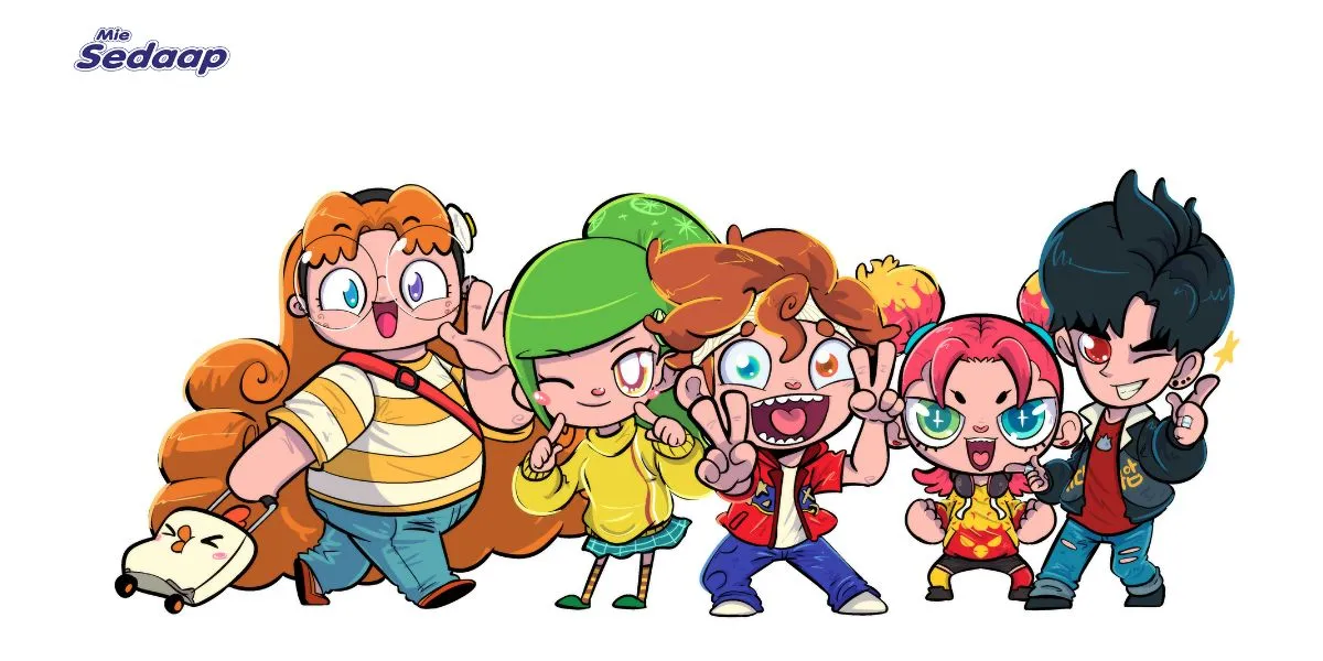 Para maskot hasil kolaborasi ini terdiri dari lima karakter berbeda yang merepresentasikan tiap varian Mie Sedaap, mulai dari Mie Sedaap Goreng hingga Mie Sedaap Singapore Spicy Laksa. Kenalan dulu yuk sama mereka!