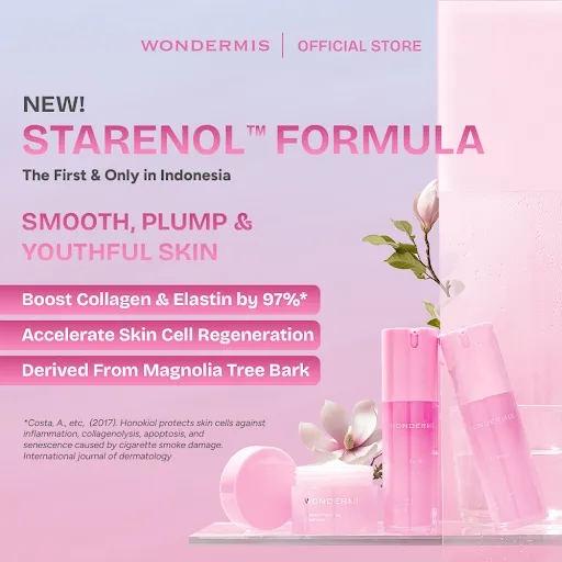 Salah satu keunggulan Wondermis ada pada kandungan STARENOLTM, formula hasil paten teknologi Korea yang pertama dan satu-satunya di Indonesia. Berasal dari ekstrak kulit kayu pohon magnolia, STARENOLTM telah terbukti secara klinis mampu meningkatkan produksi kolagen dan elastin hingga 97%, membantu mengurangi garis halus hingga 19%, meningkatkan kelembapan kulit hingga 40%, serta meningkatkan elastisitas kulit hingga 10%.