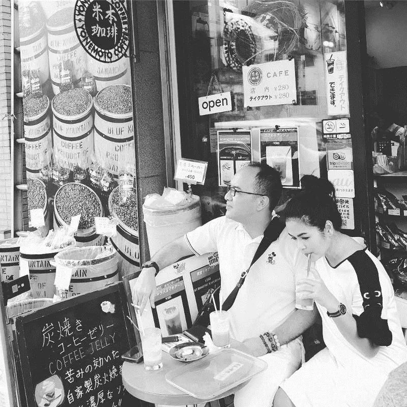 Kopi yang adem? Ya, kopi yang dinikmati bareng pasangan. Rasanya adem di hati. Mbak Puti dan suami, Joy Kameron memang tahu bagaimana cara untuk berbahagia. Ngopi berdua di negara yang bikin gembira, yaitu Jepang. Yang jomblo nggak boleh iri, ya.