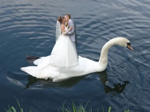 Keanggunan angsa menginspirasi pasangan ini. Hayo tebak ini angsa raksasa atau editan photoshop? :P