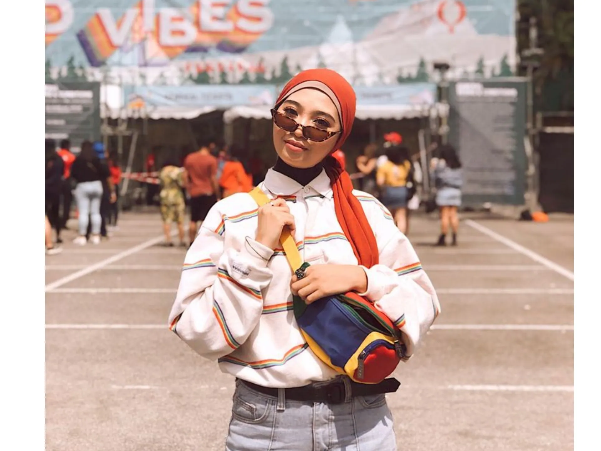 Lupakan high heels atau sandal yang licin. Gunakan sneakers andalan yang sudah nyaman dipakai berjalan jauh. Mengingat area festival yang luas, sneakers akan menjaga kaki tidak mudah lelah dan melindungimu dari risiko terinjak saat berada di area festival stand.