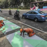 Kapanlagi.com - Persiapan terus dilakukan menjelang Asian Games 2018. Salah satunya dengan mempercantik jalanan kota Jakarta. Bahkan karena ingin lebih cantik, separator dan pembatas jalan pun juga dicat warna-warni.