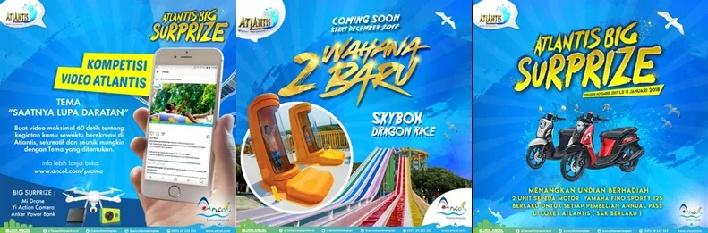 Sementara untuk Kompetisi Video Atlantis bisa diikuti dari 28 November 2017 sampai 13 Januari 2018. Nantinya, nama-nama pemenang akan diumumkan lewat media social Atlantis Water Adventures, juga akan dihubungi oleh pihak resmi Atlantis Water Adventures. Jadi, kamu tak perlu khawatir, KLovers.