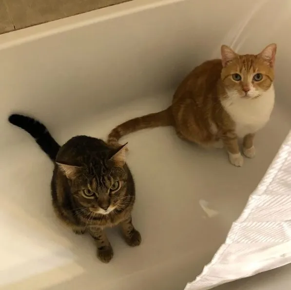 Di balik wajahnya yang tampak siap menerkammu, Giggles The Angry Cat cukup ramah dan penyayang. Buktinya, kucing yang sudah diadopsi ini tampak rukun bermain bareng kucing oren.