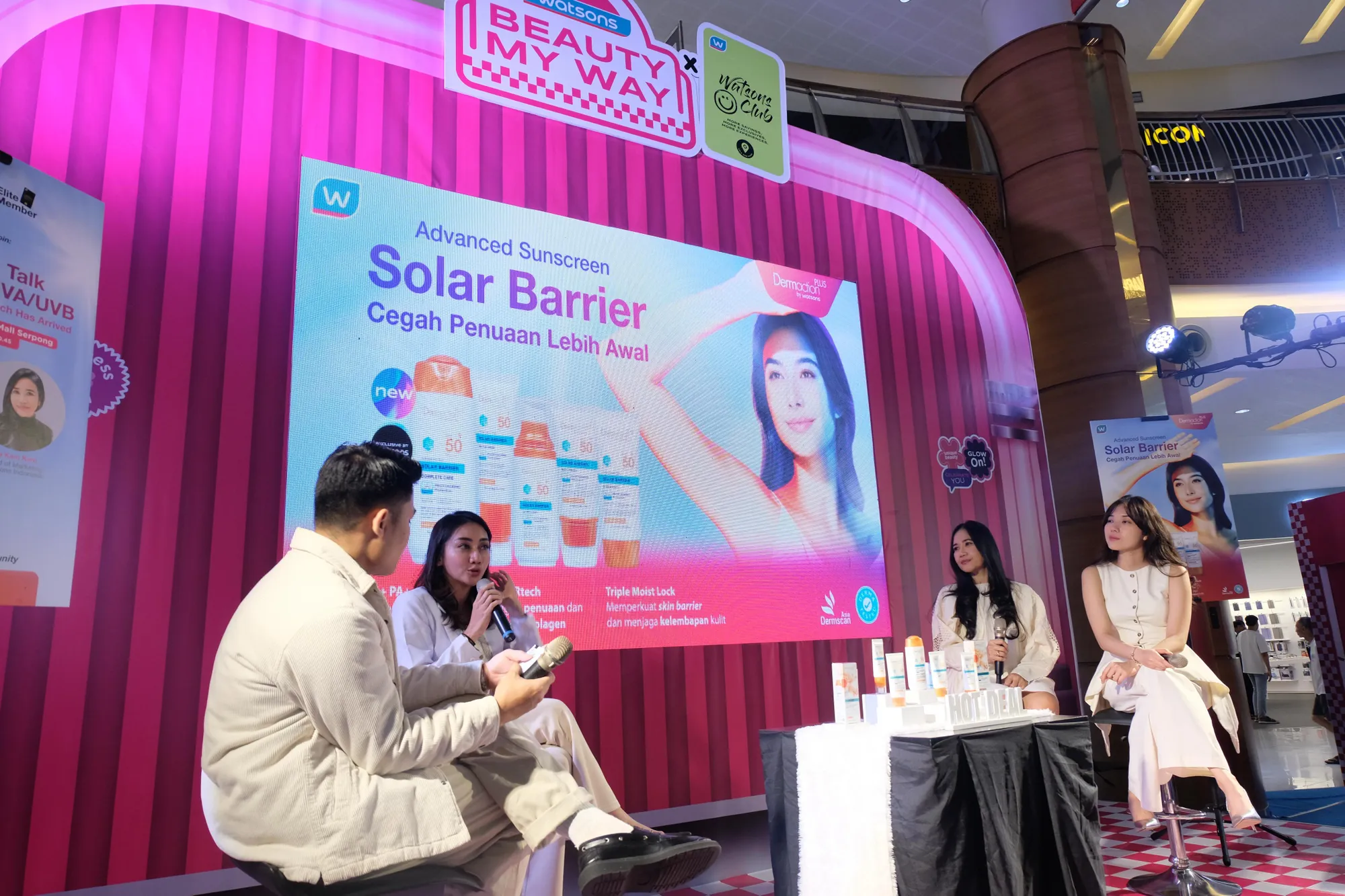 Sehubungan dengan itu, Watsons Indonesia retailer kecantikan dan kesehatan mengadakan event untuk launching sunscreen terbaru 'Dermaction Plus Advanced Solar Barrier' yang memberikan perlindungan menyeluruh terhadap sinar matahari termasuk UVA, UVB, dan Infrared yang dapat merusak kulit, seperti dark spot dan penuaan dini. dr. Pipim S. Bayasari, SpDVE seorang Dermatologist, dihadirkan pada acara ini untuk memberikan pemaparan mengenai pentingnya proteksi kulit dari sinar matahari bersama Head of Marketing Watsons Indonesia Ita Karo Karo.